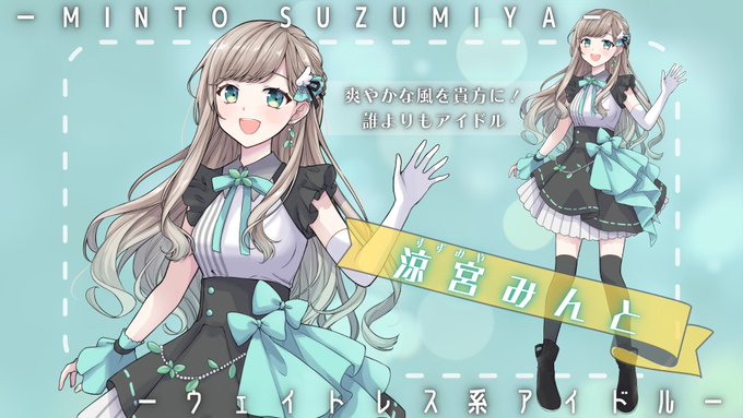 カフェ&バー ミントショコラータのウェイトレス兼Plumelattéのアイドルにてリーダー、涼宮みんとさんを描きました。