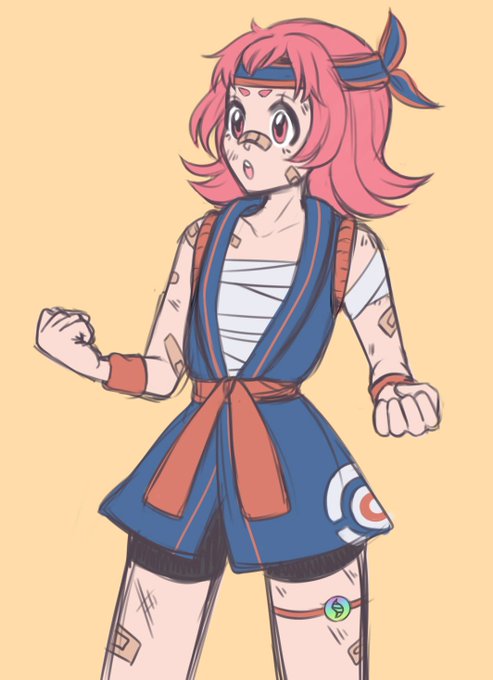 Gym Leader Maylene! Took a lot more cues from tae kwon do sparring gear since one of the key moves from that martial art is the flying side kick, which Maylene looks like she's doing in her official art so I leaned into that.