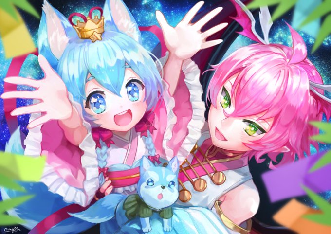 ※七夕がふたりをお迎えした記念日であるうちの飛行島では毎年コヨミとゼロキスが織姫役と彦星役をやってくれています~という妄想のえです🎋 #Minto_e