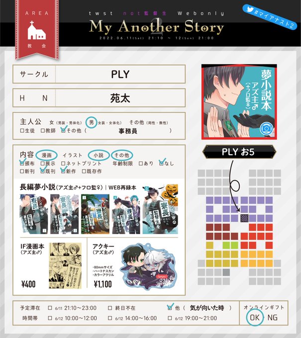 6/11-12【not監督生Webオンリー】My Another Story2のお品書きです!【教会エリア:お5】でスペースいただいてます。