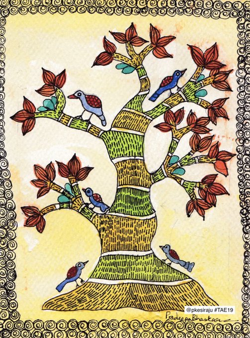 Beautiful decorative #postcardart from India. Tree of Life by @pkesiraju Many thanks for supporting #TAE19 #twitterartexhibit and @artinhealthcare Such a wonderful colourful piece #artychat #edinburgh
