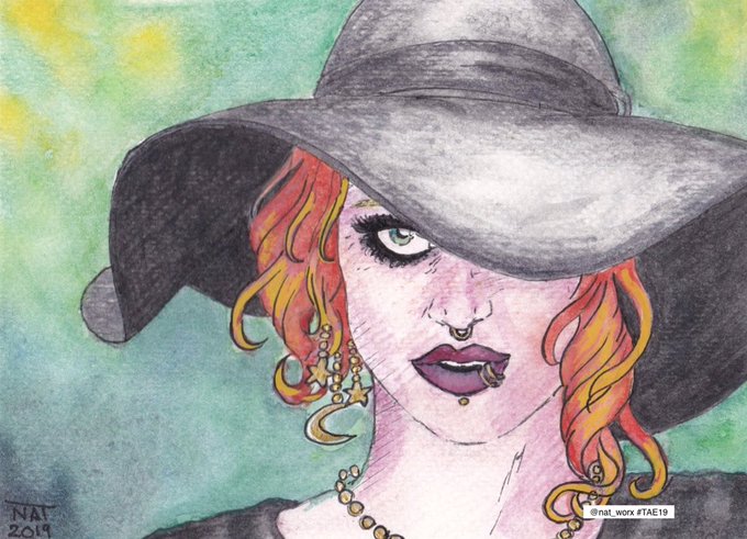 Saying good Night tonight with @nat_worx_ whimsical #postcardart Such a fun piece for #twitterartexhibit #TAE19 supporting @artinhealthcare Thank you so much #artychat