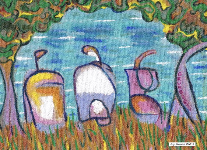 Scrummy yummy colours in the glorious #postcardart by @grubbsartist Thank you so much Glenn for supporting @artinhealthcare #TAE19 #twitterartexhibit 11-13 May in #Edinburgh @ootbdrillhall Dalmeny Street. Looking forward to meeting as many of you as possible #artychat #art