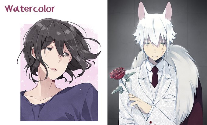 Commission types: you can choose chibi, bust up, waist up and fullbody. Also choose between sketch/B&W (cheaper!), anime cell (flat colors) or watercolor.