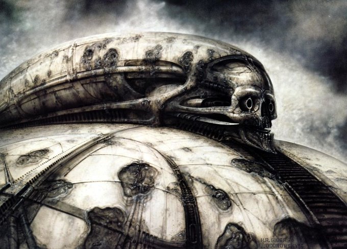 H.R. Giger concept art for Alejandro Jodorowsky's unproduced adaptation of DUNE, ca. 1975.