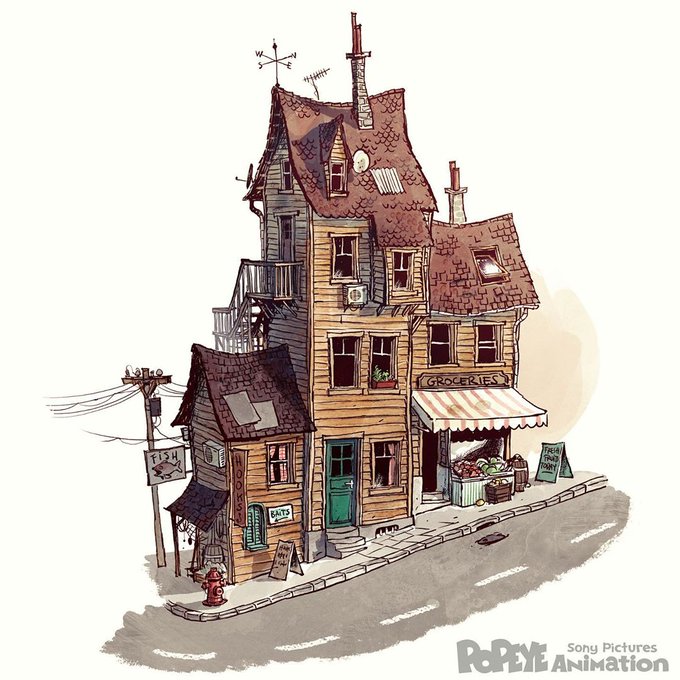 Sylvain Marc's concept art, from Popeye's canceled/unproduced feature (2013/2014)