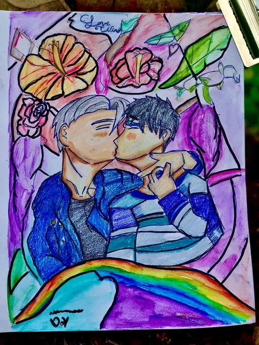 Before pride month ends, here is my viktuuri art. You deserve better with all the love and joy. Love wins 🏳️🌈🏳️⚧️
