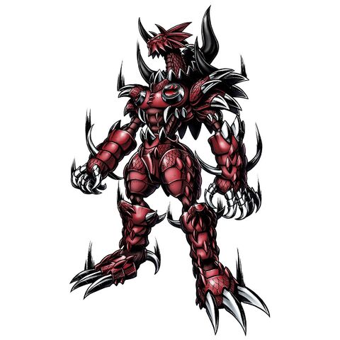 Esta fusión de MetalGreymon (2010), Dorulumon y Ballistamon está llena de armas de fuego y podemos ver las cabezas de Ballistamon, Mailbirdramon y el taladro de Dorulumon #Digimon
