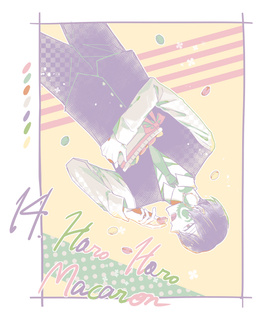 ソライロロさん@yuppyicute512 からのリプ。14、ほろほろマカロンで小学生のあしてし描きました。