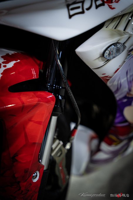 今回のナムフェスでも着ていた花咲夜の衣装(十六夜ラディアータ)にはベースに紗綾形模様が全体的にあしらわれているんですが実はそれを取り入れてブレーキホースの模様にしたんですよね(ペチャクチャ