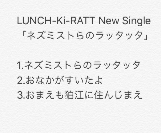 LUNCH-Ki-RATT、中止となった5月のレコ発企画より発売予定だったシングル「ネズミストらのラッタッタ」の詳細を公開!