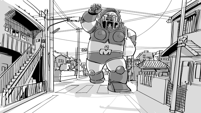 シルエット、情報を整理、遠景だとコントラストキツくしない方がいいなと思ってたらメリハリのない淡い絵になった…