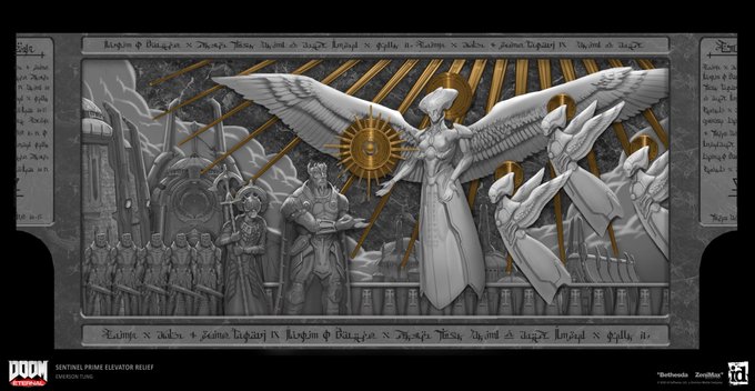"Gift of Argent Energy". A wall relief design that was also later used for a lithograph print for the DOOM Eternal Collector's Edition and DOOM 25 Custom Nintendo Switch. #doom #doometernal #conceptart