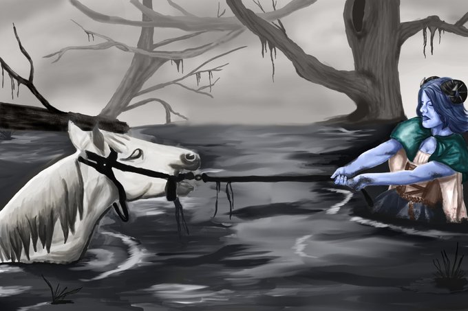Everyone is drawing cute birb Kiris but I couldn't get @LauraBaileyVO's swamp of sadness out of my head and had to relive the childhood trauma of this scene. Happy Birthday to you and @VoiceOfOBrien ! #criticalrolefanart #CriticalRole