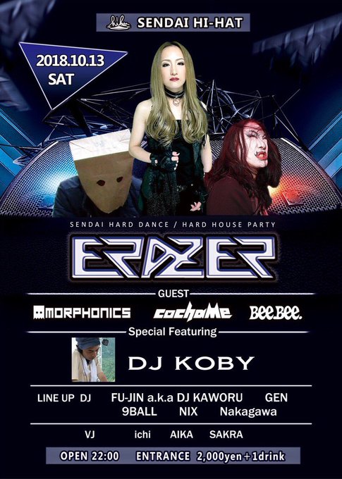 10/13 (土) 22:00~ ERAZER at HI-HAT