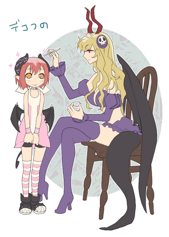 【わグ絵】さっきゅんが色々細かいおしゃれをしているのを見ていて、ついでになんかキラキラしたものをツノにくっつけてもらったりりこつん。ミーチャ大公には「くっついてるやつがガリガリ引っかかりそうで怖い(男らしい感想)」と不評