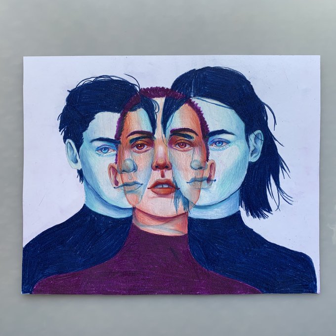 This is a piece about gender identity and me coming to terms with being gender fluid. I’d love to do a series about this in the future #illustration #coloredpencil #genderfluid #queer