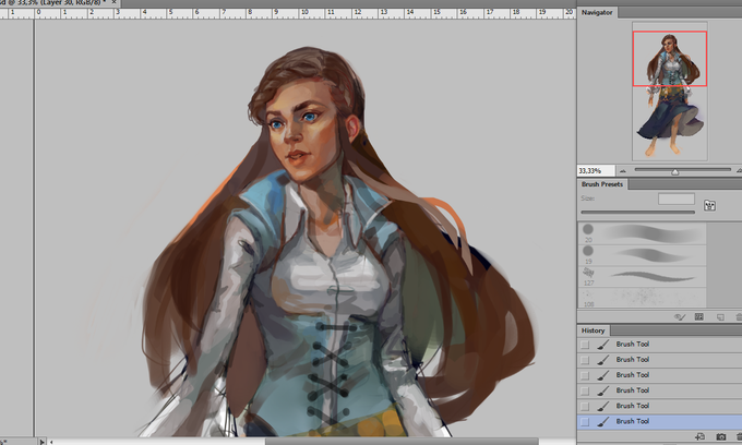 Slowly processing. I draw a part and then I erase it and then redraw it. That's how the work flows. ^^"