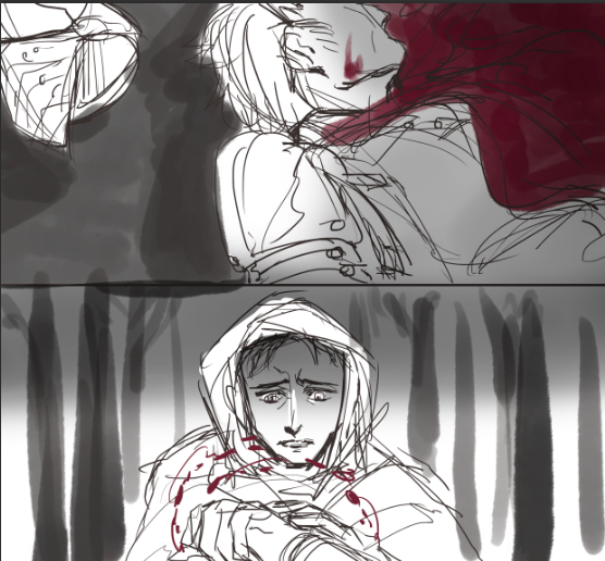 "Galahad wore his own blood like a piece of expensive red cloak. Though, It suited his cold body perfectly."