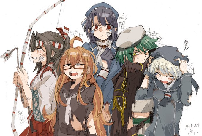 2014年の自分がマジで楽しそうに艦これ絵を描いてて感心した… (組み合わせに脈絡がないのはたしかリプで指定してもらった子を描いてたからだと思う)