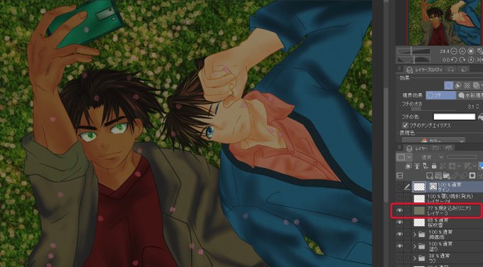 そういえば、デジ絵2年生になりましたが、この辺からようやく色レイヤーを重ねたり、効果で遊んだりすることを覚えました(笑)