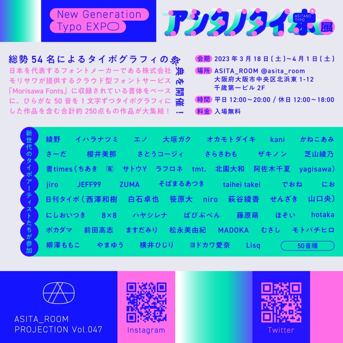 アシタノタイポ展 supported by モリサワ」に参加しています。場所は大阪、4月1日(土)まで!
