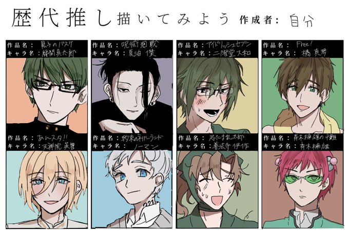 #歴代推し描いてみよう テンプレお借りしましたm(*_ _)m なんか緑系の人とメガネ多いな