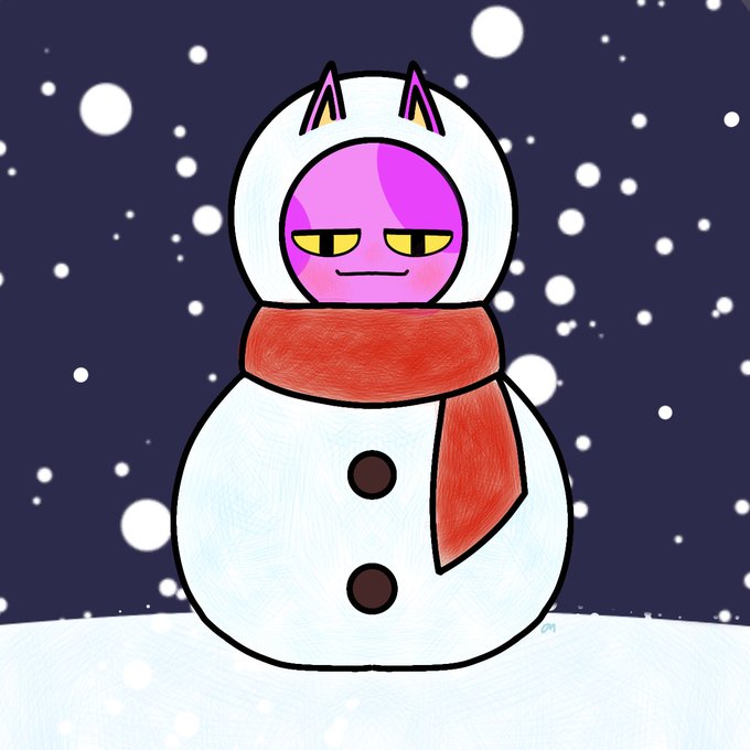 오밀님께 신청한 눈사람 히죽이에요ㅠㅠ 눈 위에 띠용 튀어나온 귀가 넘넘 귀여워....😭💜 표정도 다양하게 그려주시구...완전 감덩먹은 거 있죠..왕감사랑합니다🎈🎈💜❄☃️