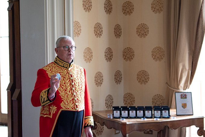 At Tulliallan Castle, @PoliceScotland College, the Lord Lyon presented the new Royalty and VIP protection “Challenge Coin” bearing the Royal Arms of Scotland by permission of Her Majesty The Queen, in recognition of the work to protect Our Sovereign and Royal Family.