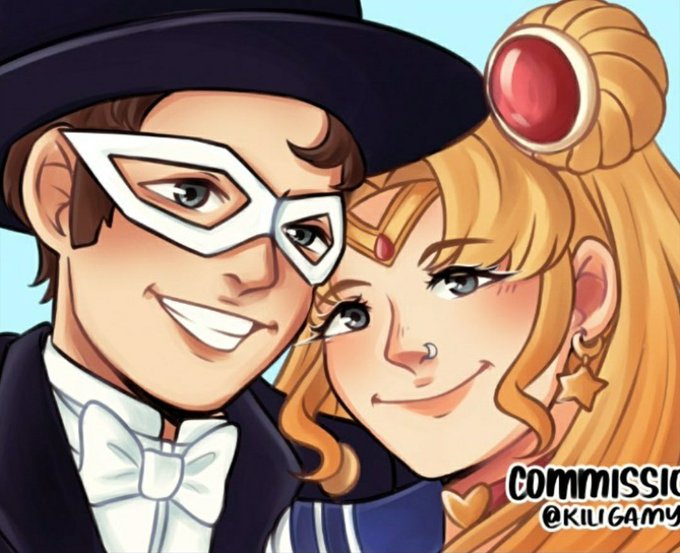 IM NOT CRYING YOU ARE! @JelliJamPancake commissioned a drawing of Toni and I as Sailor Moon and Tuxedo Mask.....anyways that's all