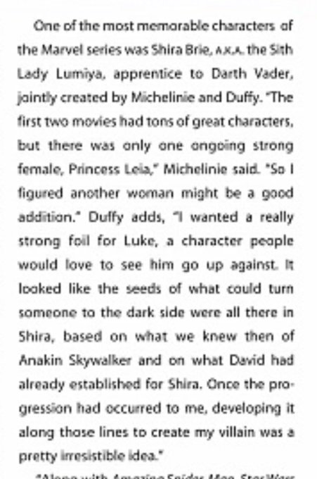 For #InternationalWomensDay: David Michelnie and Jo Duffy talking about creating the character of Shira Brei/Lumiya for the original Marvel comic run. Michelinie says his motivation for doing so — in 1982 — was the lack of female representation in Star Wars. (SW Insider #61.)