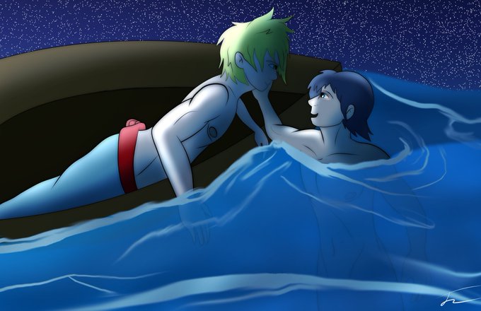 i picked doing mermay this time mainly because i havent drawn these ocs in years... say hello to rito and dexy!
