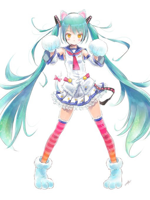 コヰルさんのミクさん!ふかふか手袋と靴がキュート!ぴょこんとでているしっぽにリボンが付いているのも良いですね(`・ω・´)b【https://t.co/kXdqIAtWKN】 #piapro #初音ミク