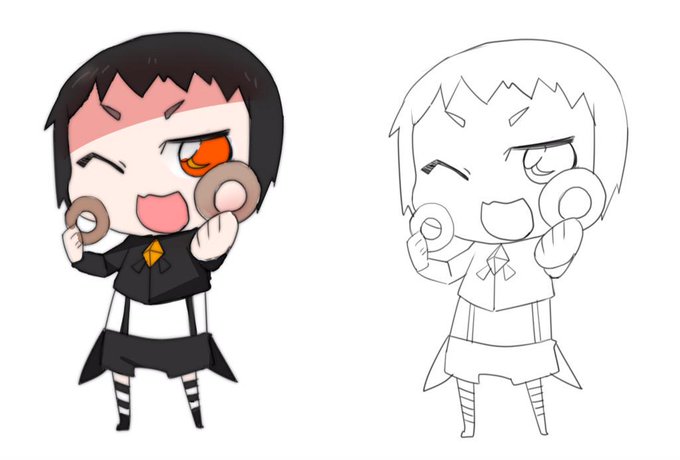 @tbmoe_room RTありがとうございました!!結局昨晩の時点の19個で描かせて頂きました\(^o^)/ #rtされた数だけ鏑木虎徹にドーナツを持たせる