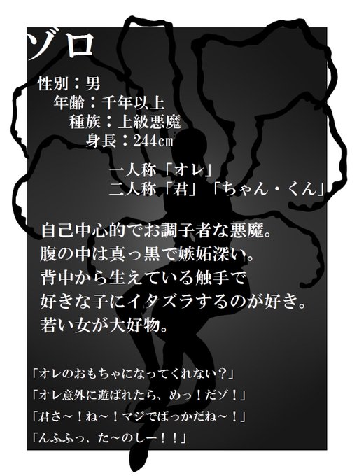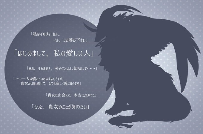 リオン。一人称:俺 二人称:あんた 結構若い年齢で子供っぽい性格。翼は元からあるため飛べる。好きなことは飛ぶことと誰かを乗せること。嫌いなものは”死” 続く↓