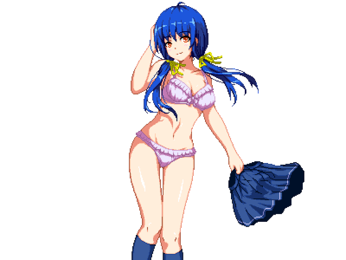 お題は下着なので、風の中下着まで脱いだ少女を描いた!#pixelart #ドット絵