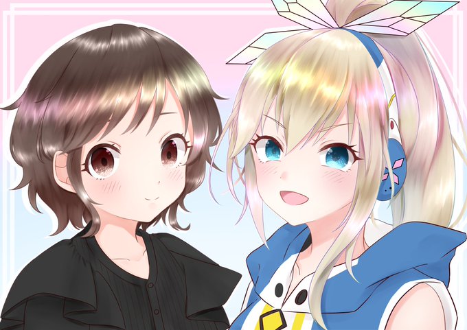 お題箱【「バーチャルYouTuber」のミライアカリと銀河アリスが幸せそうに両手を繋いで向かい合うシーンを御願い致します。】