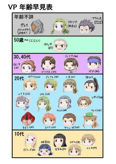 あとせっかくだし、自分用に描いたVPのプレイアブルキャラの年齢早見表もあげちゃう!