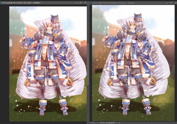 自分の画面では右が元に近いけど、違って見えるといいな
