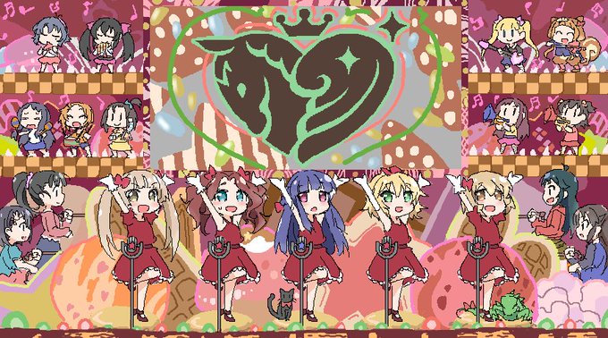 「私に天使が舞い降りた!」のEDを踊った時のリトルマーチングバンドガールズです。ひとりだけ酒飲める年齢の子がいます。 #お絵かき掲示板