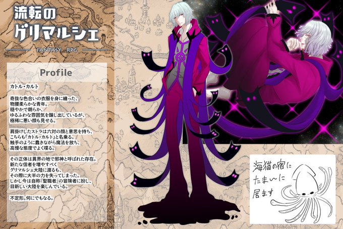 聖職者を自称する(普段は)青年の姿をした邪神。誰に対しても物腰やわらかく接する。肩掛けしたストラは意思を持ち、こちらは口汚くよく喋るようだ。ストラは武器でもあり、蠢きながら魔法を放つ。