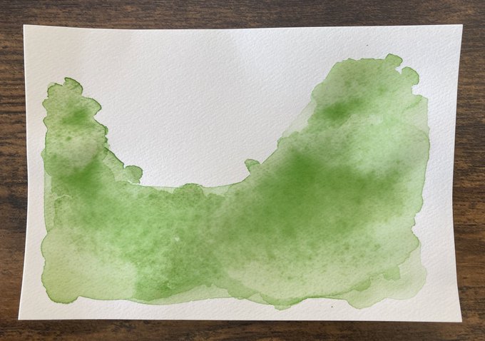 ③なかなか乾かなかったから紙を傾けて絵の具をあちこちに伸ばします