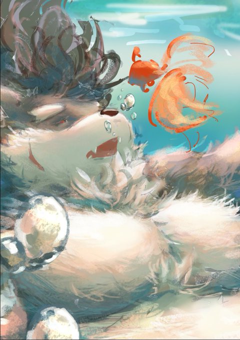 进度跟踪😆又是双管齐下。 图二是偷师于 辉熊不会画画 老师的那张游泳的雷夫🙏🙏