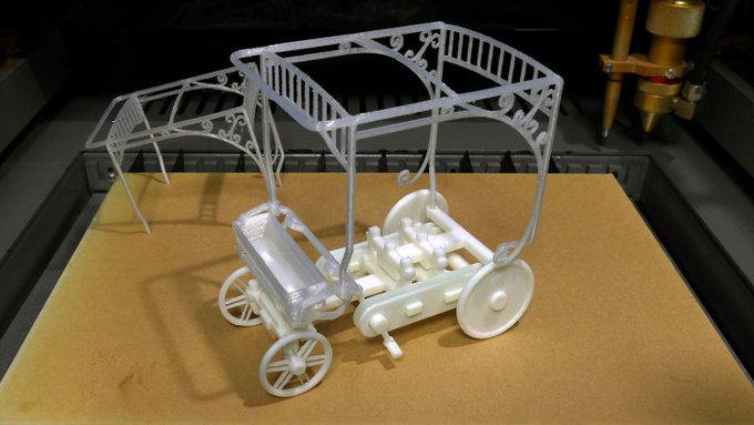 アニメ『けものフレンズ』に登場する、『四輪自転車』の3Dプリントに着手しました。出力と調整を反復し、構造の検討と模索を並行しながら、アルファ版の構築を進めています。クリアはMINDGA D2改で、ホワイト部はANYCUBIC I3 MEGAで出力しています。ペダルと後輪(同期)は、輪ゴムで繋がっています。