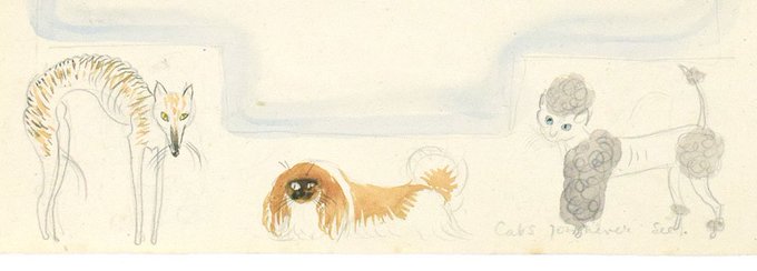 Preparatory sketches for an unpublished book of cats by Kathleen Hale, illustrator best known for the Orlando series, including 'Cats you never see', disguised as dogs! #Caturday https://t.co/OHUWdjMrmF