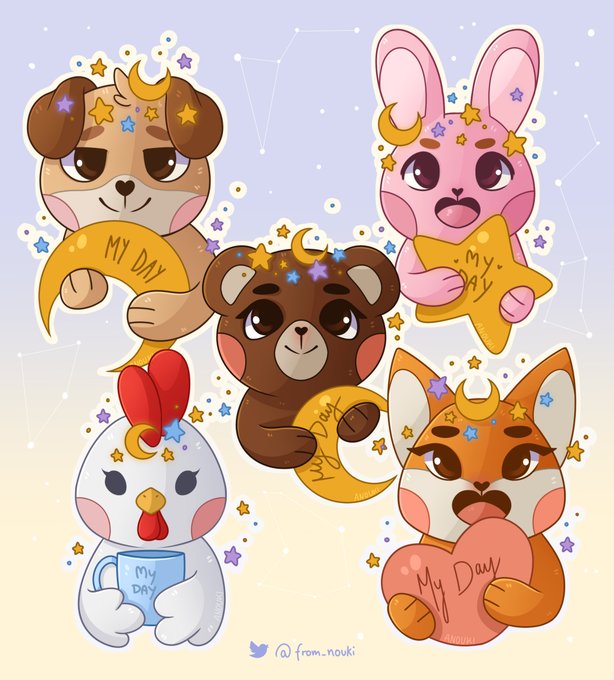 I drew some cute galaxy denimalz and turned them into a phone wallpaper and twitter header!