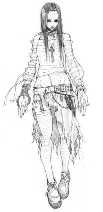 quick oc sketch I liked! cyberpunk 2077 made me realize i need to get better at designing clothes so my brain can be at peace