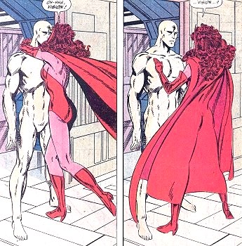 Quando o casal se juntou aos Vingadores da Costa Oeste, Visão logo chamou a atenção de uma força-tarefa especializada, que sequestrou o sintozoide, dissecou seu corpo, e limpou suas memórias. O herói retornou branco e irreconhecível, abalando o relacionamento com Wanda