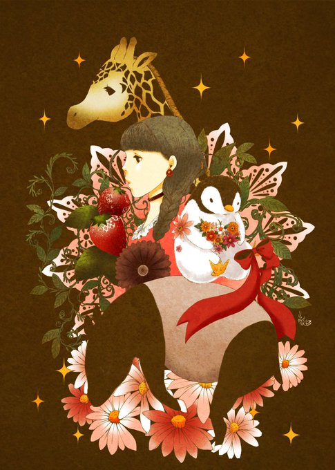 夢見る乙女 #オリジナル #女の子 #メルヘン #趣味絵 #少女 #花 #キリン #ペンギン https://t.co/3avl5Oxb2S