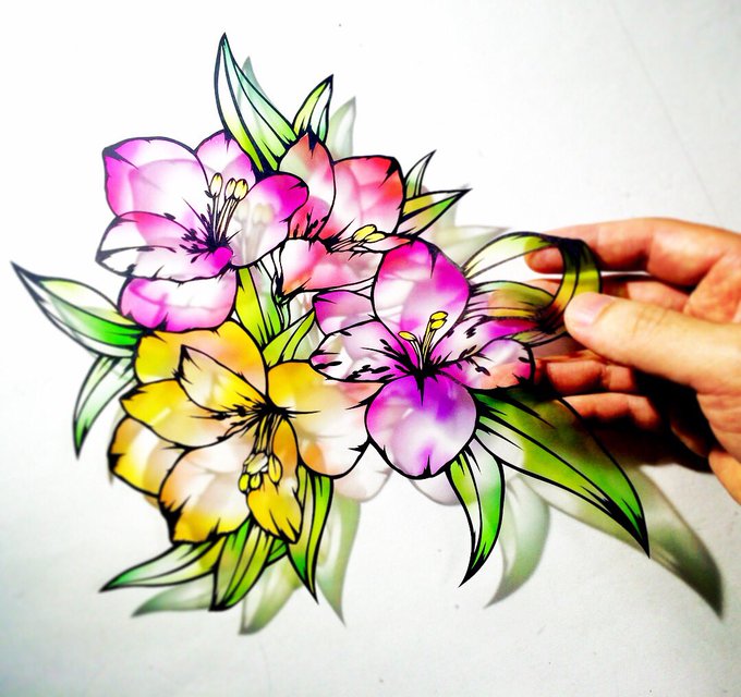 アルストロメリア 花言葉は「未来への憧れ」 異なる花の色=無限の可能性 を表現しており夢見る人を応援した切り絵です 大阪の某所へ飾らさせていただいております✨ #切り絵 #花